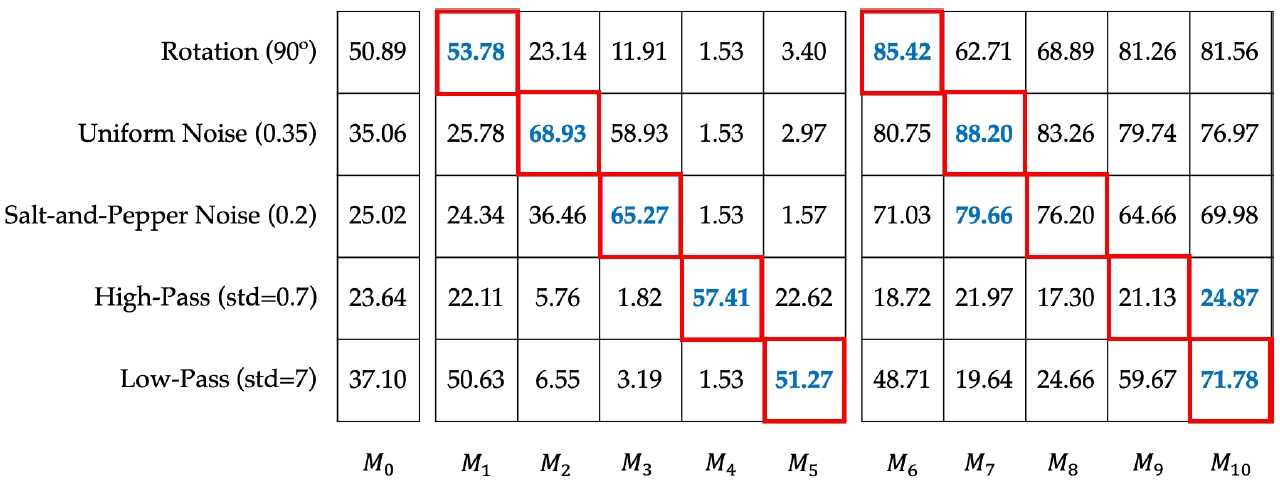 Experiment results in Figure 3 shows ADDA and Deep Coral’s improvements on the target domain. Deep Coral generally outperform ADDA by a large margin except on the High-Pass target domain. The failure on this domain is mostly likely due to the drastic domain shift between High-Pass and others, as illustrated in Figure 2 in the dataset section. Deep Coral has better generalizability to unseen domains. It’s most likely because Deep Coral doesn’t alter the encoder much and the encoder is pretrained on the ImageNet (though without any added noises).
